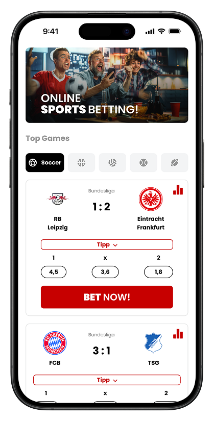 Over 100,000 players already rely on us as a dependable financier. We are well-known from radio and television, as well as for our involvement in amateur sports and the Bundesliga.
